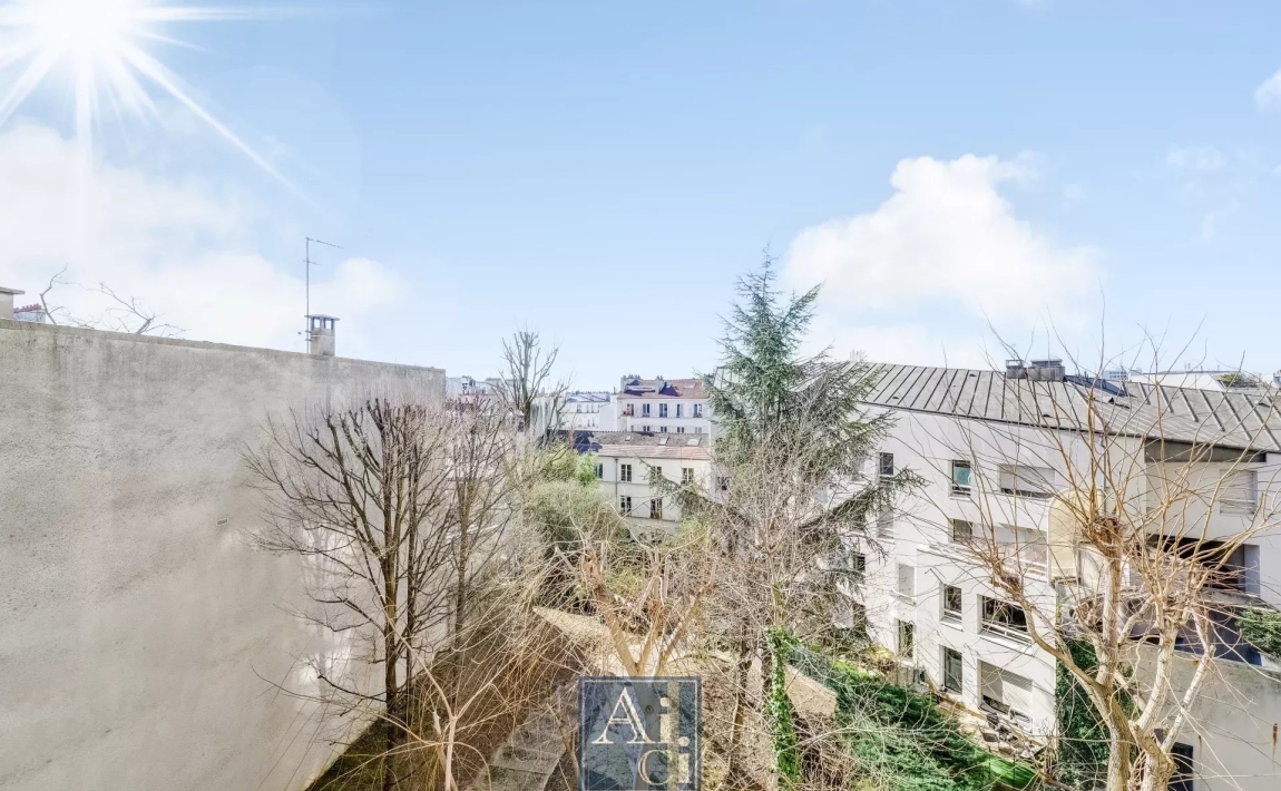 Pyrénées/Buttes-Chaumont. La campagne à Paris. Immeuble des années 90 de bon standing, Appartement avec une belle vue dégagée. 4PP de 76,81 m² avec 13,80 m² de terrasse au 2eme étage avec ascenseur. Entrée, beau double séjour de 31,16 m² donnant sur la terrasse. Une cuisine séparée. Deux chambres. Une salle de bains. WC séparé. Rangement. Parquet. Un parking et une grande cave complètent cette offre. Nombre de lot Total : 69. Pas de procédure en cours.