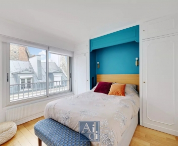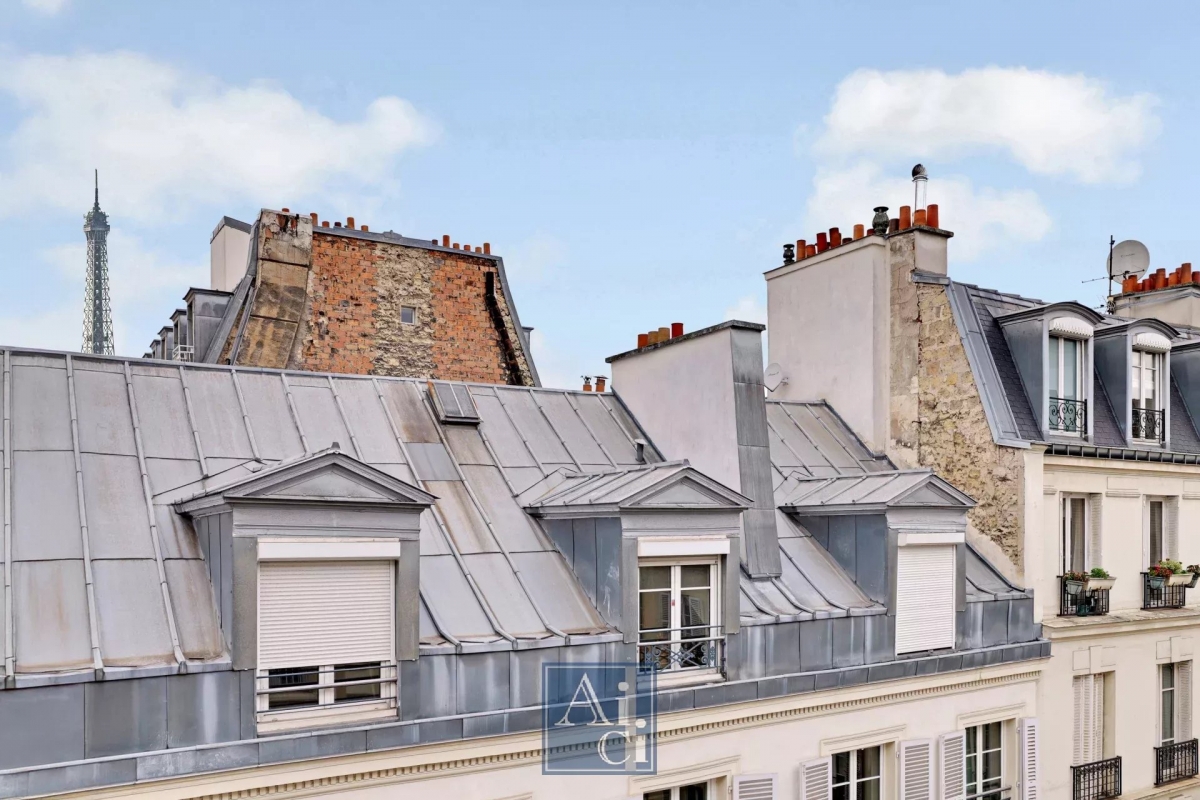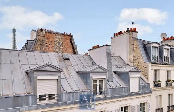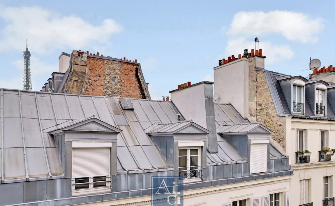Le bien dispose d'un balcon et bénéficie d'une vue emblématique et imprenable sur les toits de Paris et la Tour Eiffel.