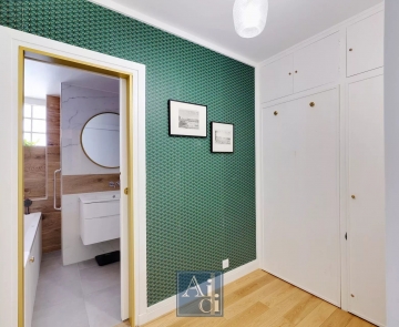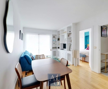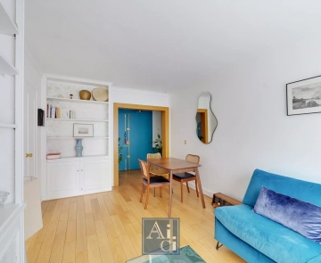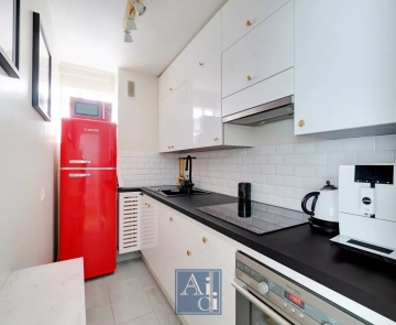 L'espace est parfaitement optimisé, offrant un séjour élégant avec parquet, une cuisine incorporée moderne.