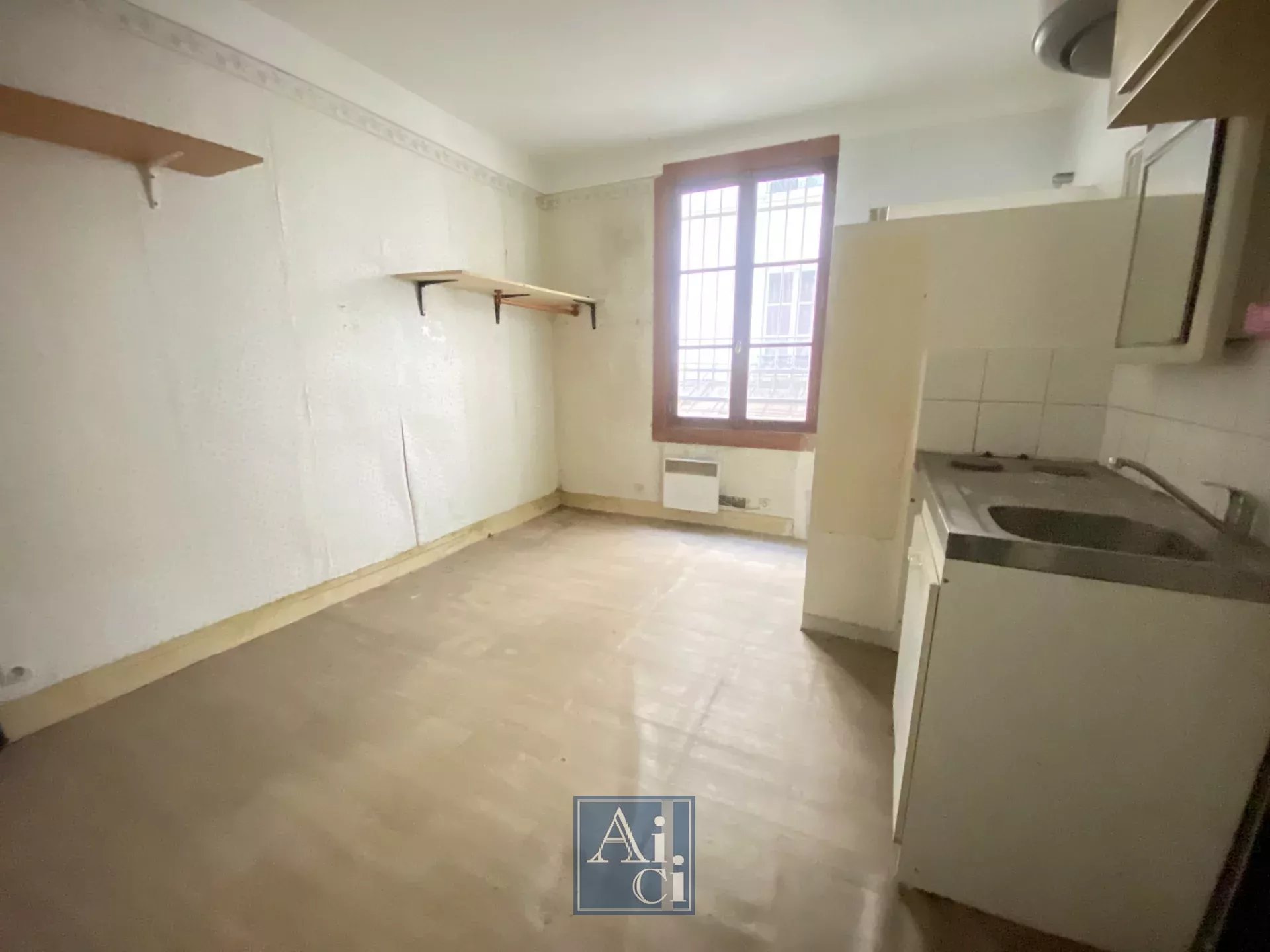 Saint-Ambroise / Square Maurice Gardette. Dans un immeuble Pierre de taille, au calme, au 1er étage ascenseur. Proche des commerces, Studio à rénover de 13,28 m² Belle pièce de vie avec une kitchenette, douche et WC. Rare à la vente !! Pas de procédure en cours. Nombre total de lots : 43